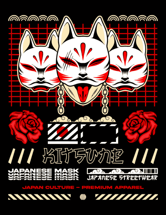 Pack 4 vectores para la impresión de Japones streetwear, es arte Japones con gran calidad para sublimado, serigrafia y dtf.