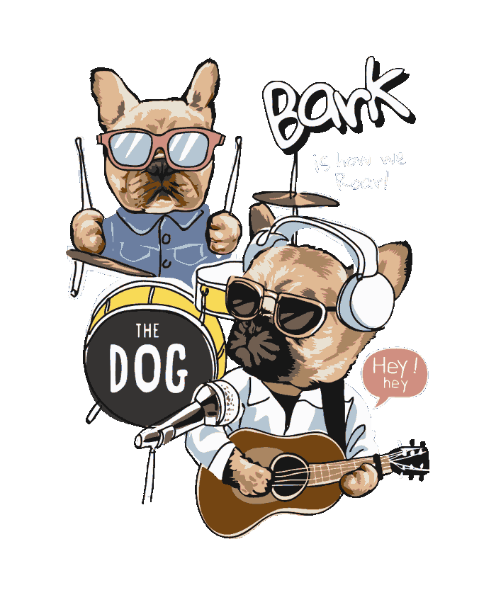 "¡La banda más perruna del mundo! Pug guitarrista, frenchie en la batería y el vocalista con micrófono. 'Bark is how we Roar'. Diseño vectorial súper divertido para camisetas rockeras, tazas y posters. Perfecto para amantes de los perros y la música."
