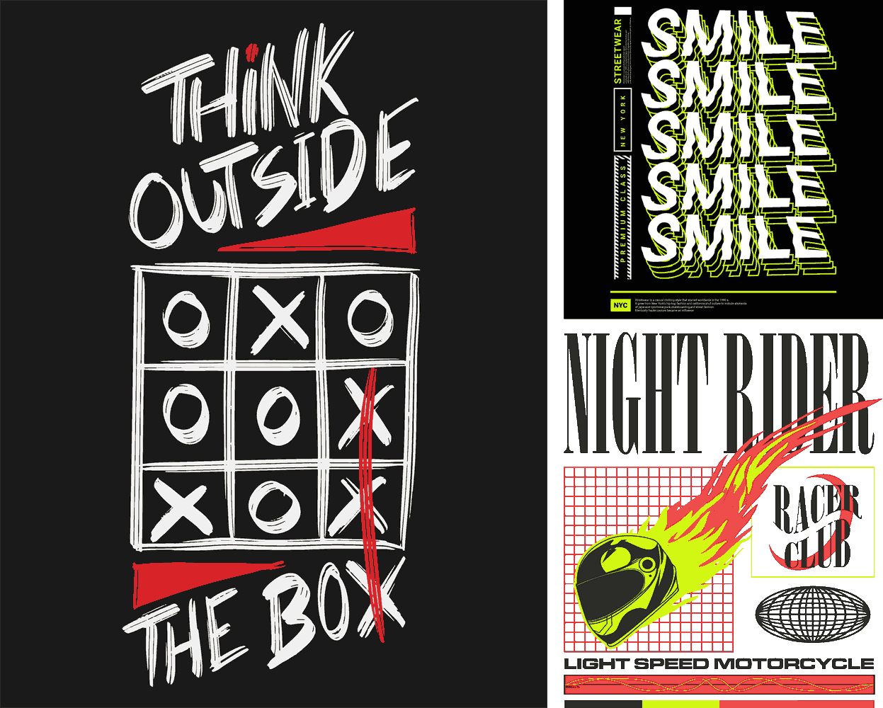 Pack 7 vectores Streetwear diasf de alta calidad para la impresión de sublimado, serigrafia y dtf